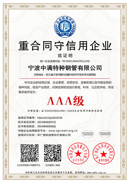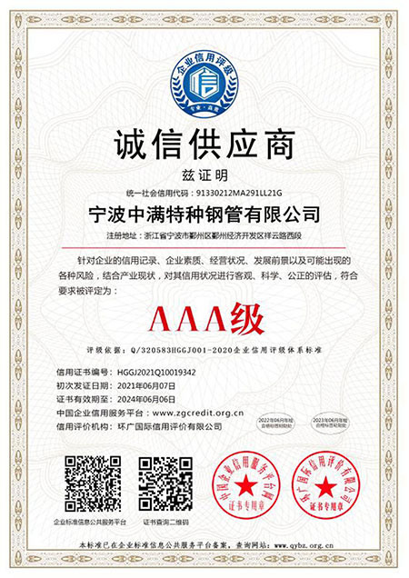 寧波中滿特種鋼管有限公司是一家專業(yè)生產(chǎn)精密光亮無縫鋼管、碳結(jié)鋼無縫鋼管、合金鋼管、異型鋼管、方管、六角鋼管、無氧光亮退火精密鋼管、汽車零部件用精密無縫鋼管、高壓膠管管芯用精密管。